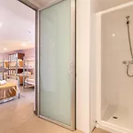 De inrichting ter plaatse omvat ook een tegel, een tegelvloer. Een inloopdouche behoren ook tot de gemakken in de badkamer.